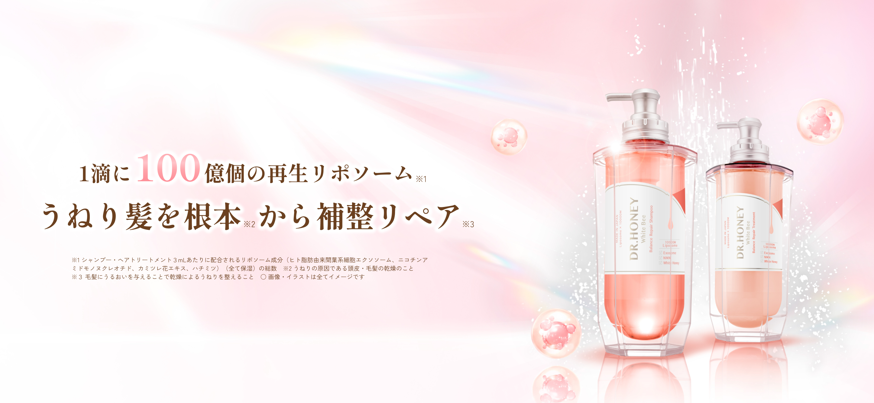 再生リポソーム※8とうねり補整成分※9が毛髪内部まで浸透し、
